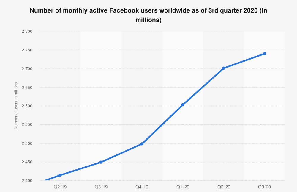 Os dados mais recentes dizem-nos que 2.7 mil milhões de pessoas utilizam o Facebook mensalmente.